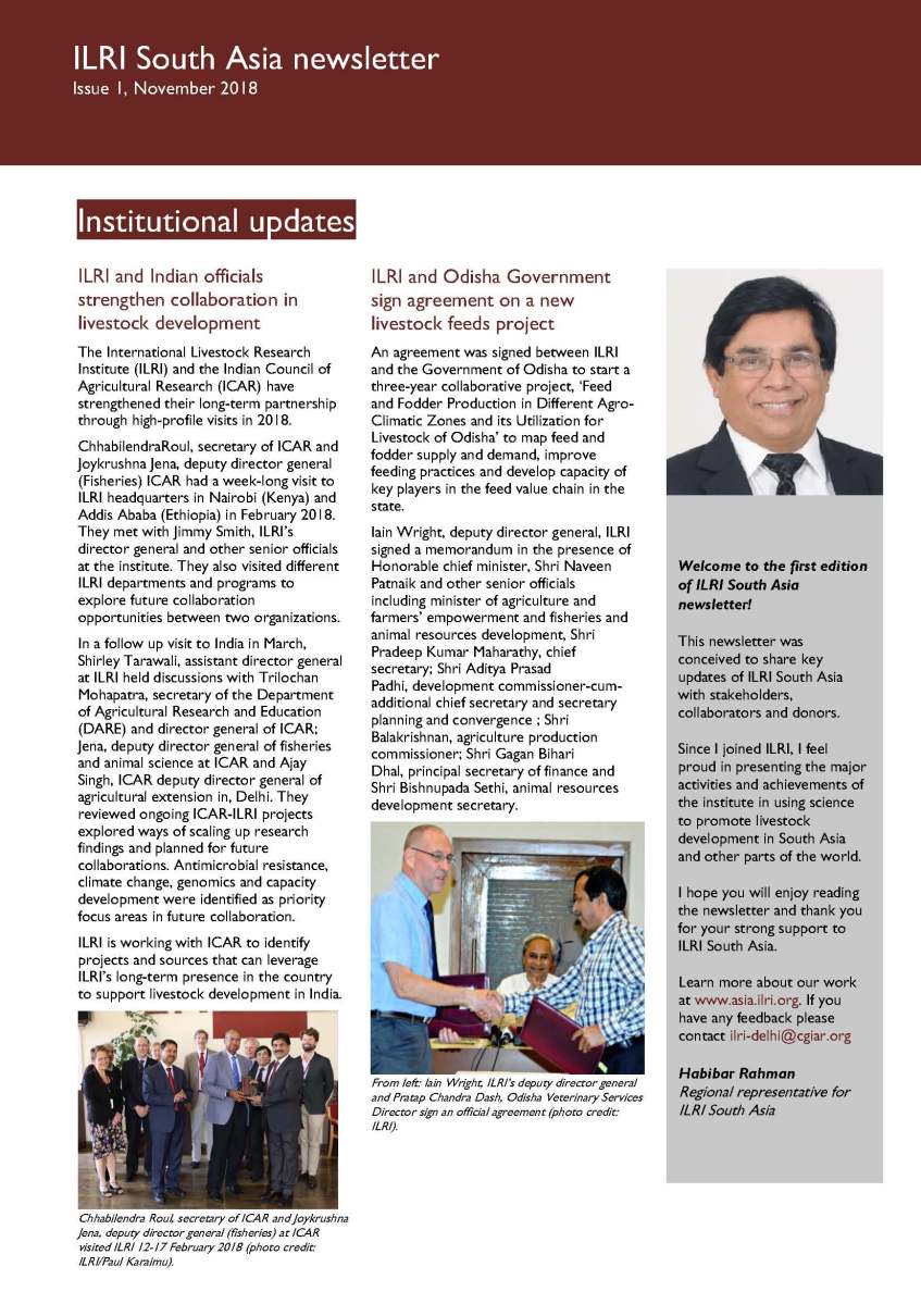 ILRI South Asia_Printed newsletter-issue 1_Nov8_Final_Page_1 Published February 5, 2019 at 1653 × 2341 in Issue 1 and 2 of ILRI South Asia Newsletter is now available Next →
