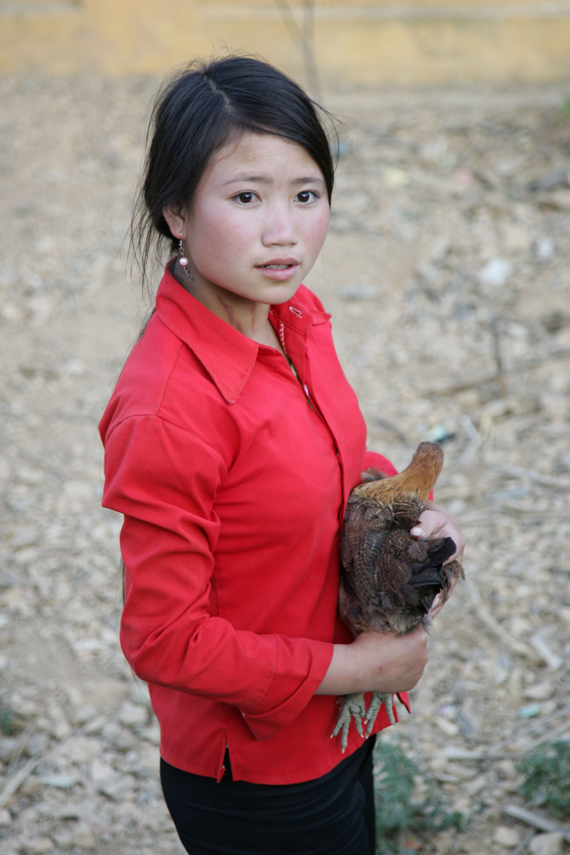 5139072318_4d0ef18c5f_o Published March 11, 2019 at 2336 × 3504 in Video: Gender in livestock development A Hmong girl, 13 year old Hi Hoa Sinh, holds a black chicken in the village of Lung Pu.