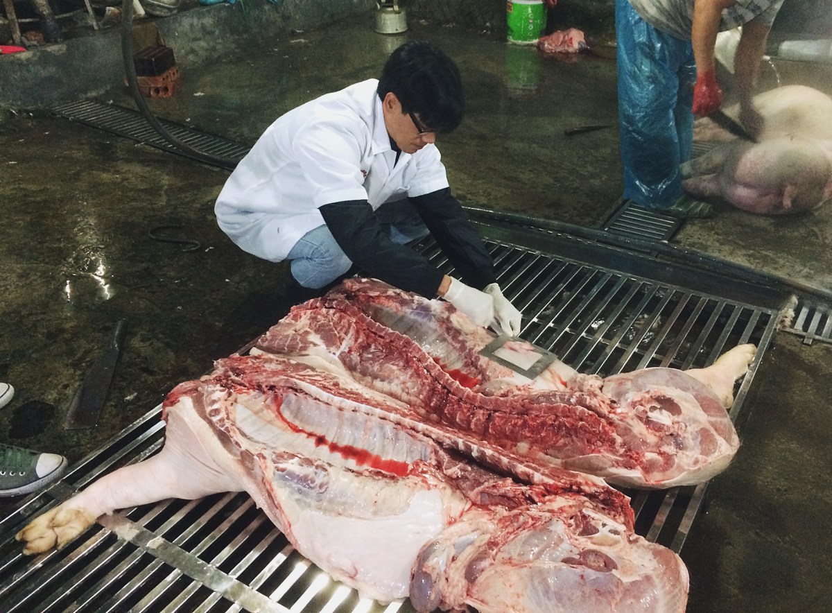 2016_Sample collection at slaughterhouse Published May 24, 2022 at 1800 × 1327 in Nghiên cứu mới cho thấy khả năng kháng kháng sinh của vi khuẩn Salmonella trong các mẫu thịt lợn tại các cửa hàng bán lẻ và cơ sở giết mổ ở Việt Nam